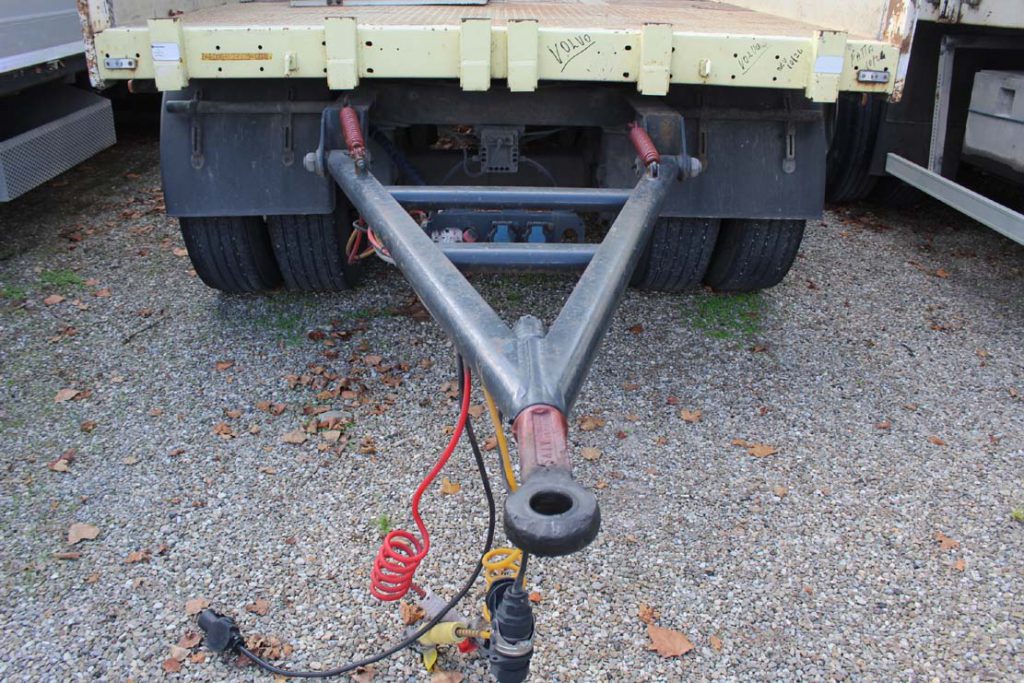 - Allestimento: rimorchio cassonato aperto 2 assi viberti usato a pianale con sponde laterali in alluminio anodizzato da 80cm di altezza in 2 sezioni, apribili e smantabili, sponda posteriore da 80cm di altezza, testata anteriore da 80cm di altezza, pianale utile di carico 7.40m di lunghezza, ganci collari al pianale, sedi piantane interne al pianale, arganelli laterali in banchina per fissaggio cinghie, casetta porta attrezzi in pvc da 80cm, piantoni kinnegrip smontabili, sospensioni pneumatiche con valvola regolazione assetto, timone con occhione per campana automatica, ebs, freno a disco, ben gommato.
