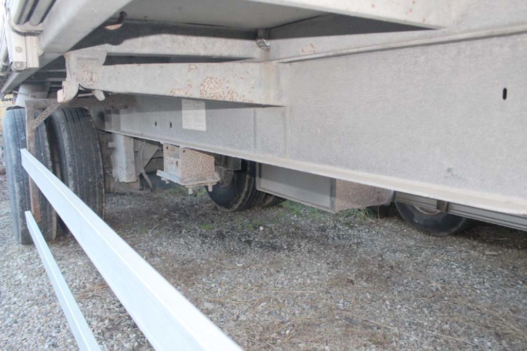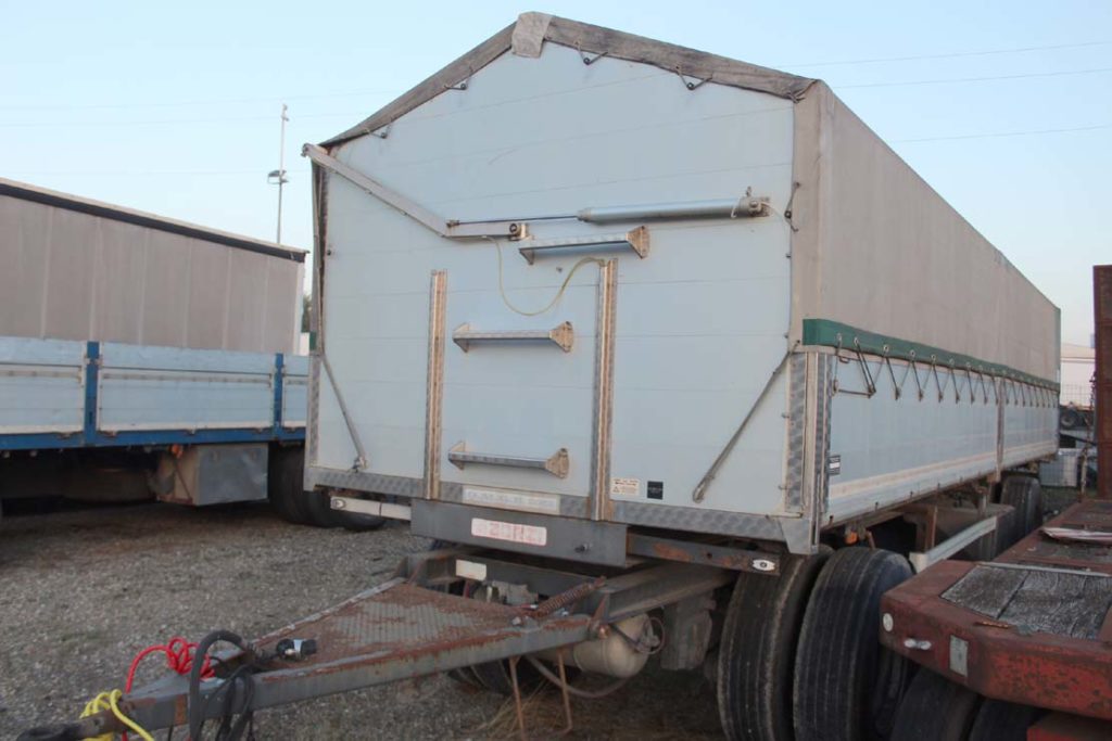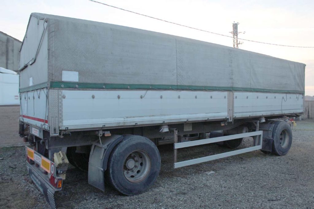 • Allestimento: rimorchio ribaltabile bi laterale zorzi usato a 2 assali con sponde in alluminio in 2 sezioni da 160cm di altezza totale, sponde basse da 100cm+ sovrasponde da 60cm, apertura basculante e sottosopra e bandiera per sponde superiori, tetto con copri scopri zamuner pneumatico con avvolgitore del telo in pvc, oianale in acciaio con bocchettoni di scarico laterali, timone con occhione per campana automatica, cassetta inox da 100cm porta attrezzi, profili e piantoni centrali in inox fiorettato, doppia valvola regolazione assetto, para urto posteriore inox, innesto idraulico a singola mandata, scaletta anteriore e para cicli laterali in alluminio.