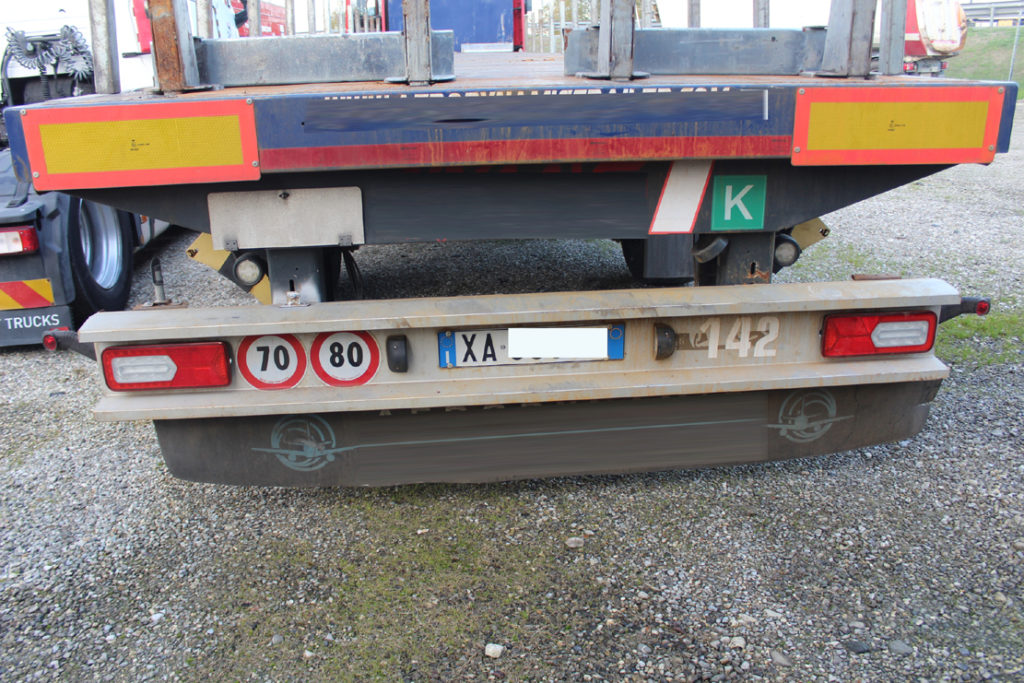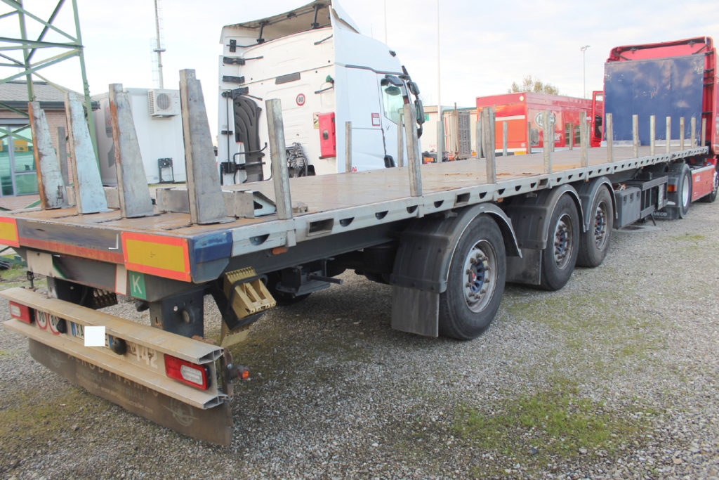 - Allestimento: semirimorchi pianalati container piantane aereodynamic usati, varie unità, n°6 traverse twist lock x alloggio container e casse mobili da 1×20 bilanciato, 1×30, 1×40, 1×45, casse mobili da 6.15 m a 13.60 m, pianale in lamiera rinforzata, telaio per carichi concentrati con traverse a passo corto, n°3 assali a disco con 1° sollevabile e 3° assale sterzante autodirezionale con sterzatura maggiorata, ADR, altezza collo telaio 16cm, n° 12 coppie di piantane laterali in tubolare quaddro, testata anteriore rinforzata da 220cm, doppia cassetta porta attrezzi in pvc da 100cm, cesto portta piantane passante, profili laterali inacciaio zincato per ancoraggio merce, kit selle in acciaio posiizonabili sul pianale, smart boaed wabco, n°10 unità disponibili salvo il venduto, abbinabili a casse container da 45 piedi open top e a casse coils 20 piedi, revisionati, ottime condizioni, n°2 unità 2022 e 8 unità 2023.