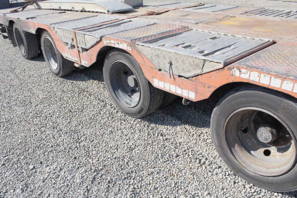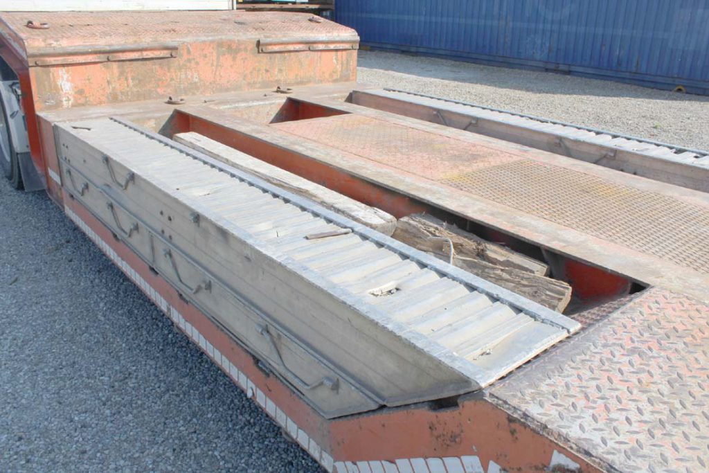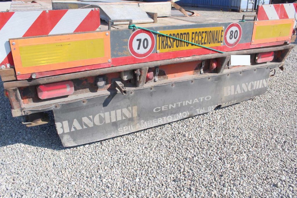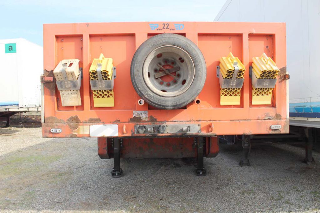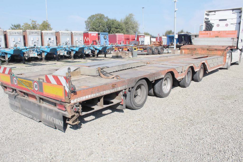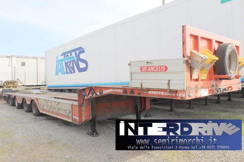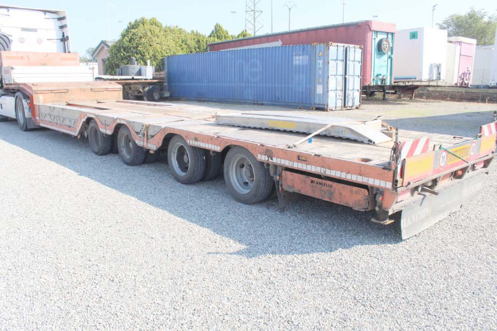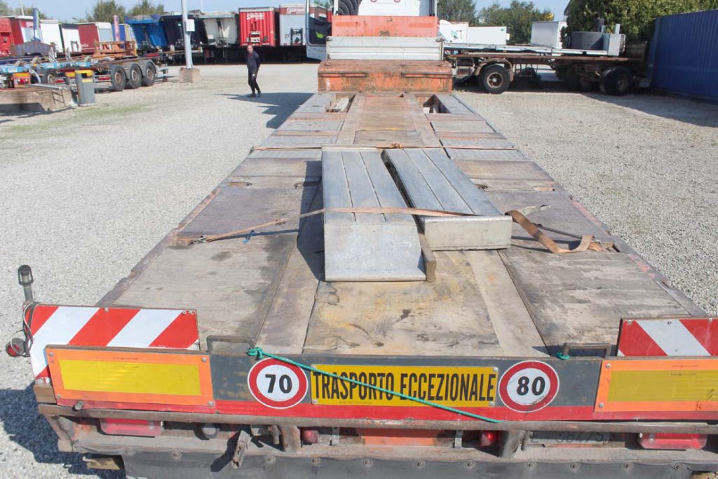 - Allestimento: semirimorchio carrellone 4 assi buche deangelis usato a pianale ribassato collo d’oca, 4 assali doppi con sospensione pneumatica, ebs, valvola regolazione assetto, buche dal collo al 1° assale con tappi in alluminio amovibili, buche tra il 1° e 2° assale e tra il 2° e 3° assale, rampe posteriori amovibili in alluminio, tabelle estraibili per carichi fuori sagoma, testata anteriore da 120cm di altezza, ruota di scorta, ganci collari al pianale, ganci ad uncino laterali alla banchina, piedi a doppia velocità, para cicli laterali in alluminio, sponde sul collo in alluminio apribili, doppia cassetta in pvc porta attrezzi.