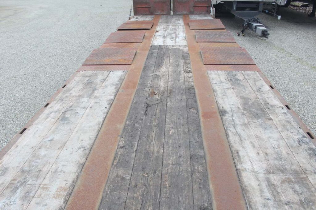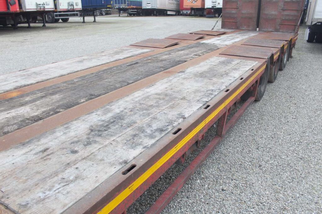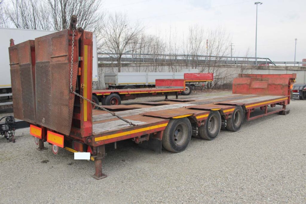 - Allestimento: semirimorchio carrellone deangelis 12.30m usato con rampe posteriori doppie a movimentazione idraulica, rampe a tutto lato, pianale parte bassa da 9.20m, sospensioni pneumatiche, abs, tappi estribili sugl’assali, piedi posteriori equilibratori, arganelli laterali sflasati, ganci ad uncino laterali, incasso sul collo per ricovero verricello, innesti idraulici anteriori a doppia mandata per movimentazione rampe, asole laterali al pianale per ancoraggio cinghie, buone condizioni, revisionato e ben gommato, spondine sul collo estraibili.