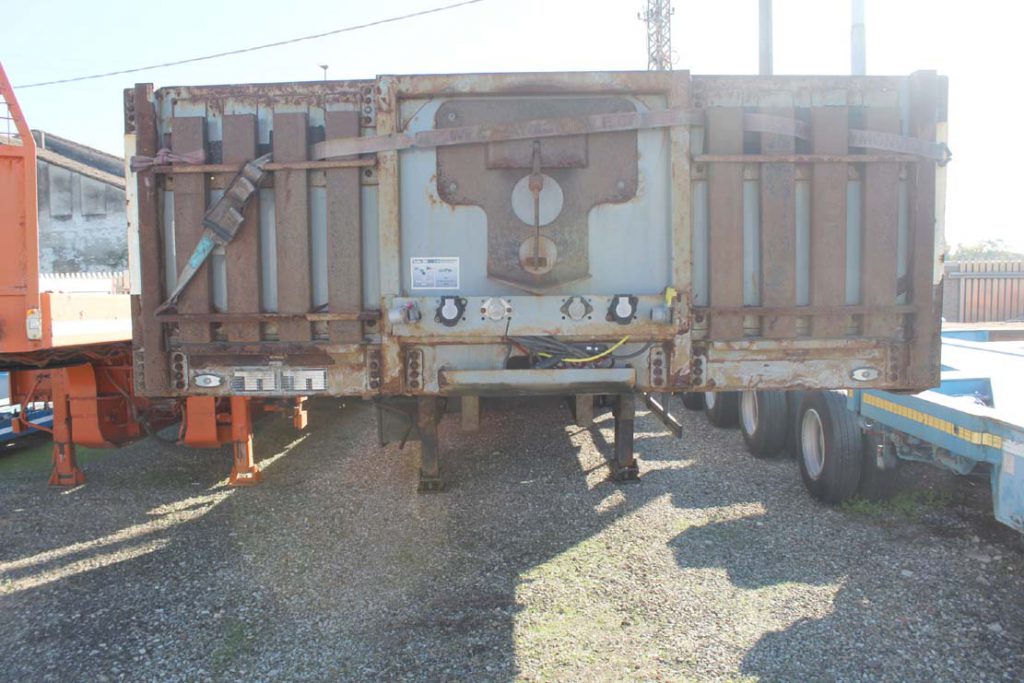 - Allestimento: semirimorchio carrellone pianale collo d’oca moeslein usato con predisposizione rampe posteriori amovibili(non presenti), n°4 traverse twist per alloggio di container da 40 piedi, 45piedi e 2 x 20 piedi, sospensioni pneumaticje, ebs, valvola regolazione assetto, porta rampe sotto pianale, piedi a doppia velocità, n°9 coppie di ganci collari laterali a scomparsa da 7 ton cad1uno, piedi posteriori equilibratori, para cicli laterali, n°2 cassette in pvc porta attrezzi, n°3 traverse passanti di sedi piantane rulasi e n° 9 pali piantana in tubolare rettangolare, testata anteriore da 120 cm.