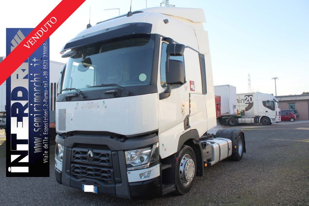 - Allestimento:trattore stradale ralla variabile renault T460 usato con telaio ribassato, sospensioni pneumatiche integrali regolabili, ralla ad altezza variabile saf regolabile da 960cm di altezza ad 130 cm, doppio serbatoio, serbatoio urea, motore conforme alle normative euo 6, cambio automatico e semi, retarder, radio, cd, frigo, cb, letto singolo, cabina alta con spoiler laterali, bloccaggio differenziale, ottime condizioni.